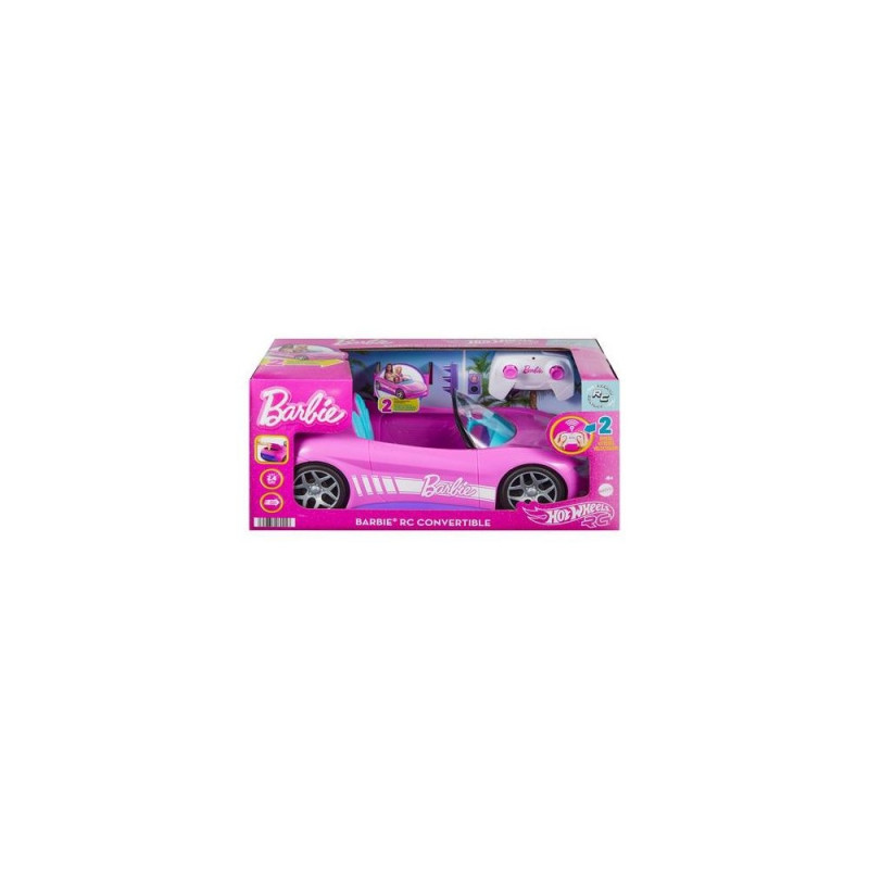 Hop into the Hot Wheels RC Barbie Convertible for an epic road trip! This super cute and signature pink remote-control car fits two Barbie dolls and has room in the trunk for storing important road-tripping accessories. It also includes a sheet of stickers to add personal style to the car's look! Choose from two driving modes story and speeder to adjust to different terrains and vibes. Dolls and accessories sold separately. Colours and decorations may vary.Hot Wheels RC Barbie Convertible, Battery-Powered Remote-Control Toy Car, Fits 2 Barbie Dolls. Product type: Car, Theme: Barbie, Recommended age (min): 4 yr(s), Recommended age (max): 99 yr(s). Battery type: AA, Number of batteries supported: 5. Material: Plastic, Product colour: Pink