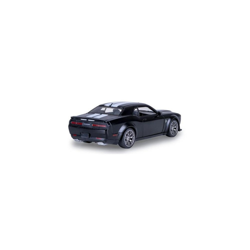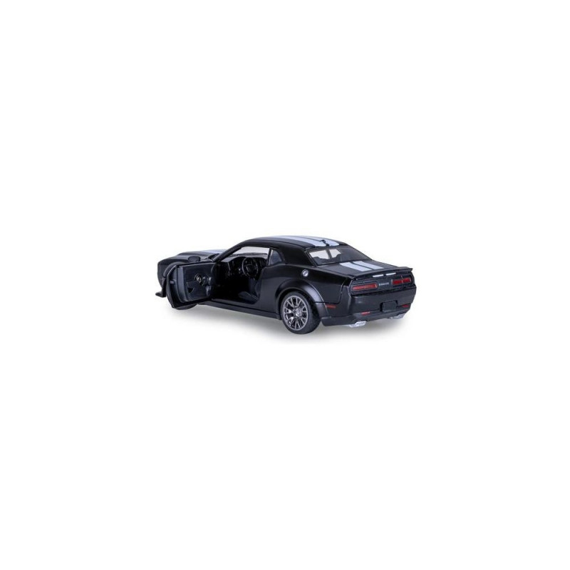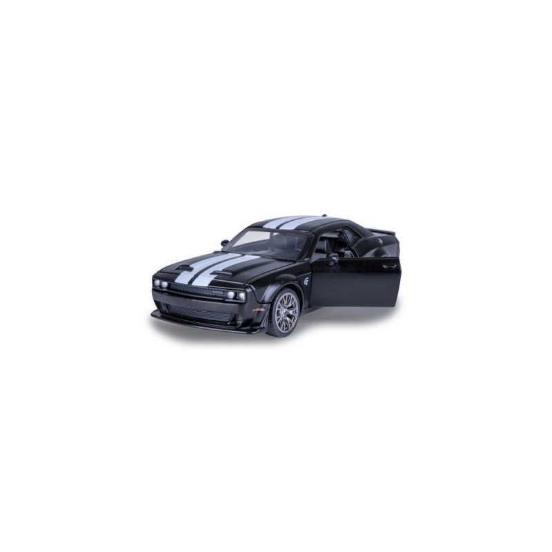 The Dodge Challenger SRT Jailbreak is a special edition of the legendary US muscle car, representing maximum customization and brutal performance. Equipped with a powerful 800+ horsepower HEMI V8, the Jailbreak offers an incomparable driving experience and pure American driving pleasure – a true monster on the road. JAMARA brings this unique vehicle to your display shelf in a high-quality 1:36 scale metal DIECAST model – with many small details that will delight every fan. This officially licensed model impresses with a true-to-life interior and the distinctive design of the Challenger SRT Jailbreak. The cabin accommodates a play figure, while profiled rubber tires and a transparent windshield provide an authentic appearance. With the multi-part custom tuning kit, you can customize the model according to your preferences. The doors and hood can be manually opened, revealing the impressive interior – a true highlight for every collector. The Dodge Challenger SRT Jailbreak by JAMARA is not only a real eye-catcher for your display but also a must-have for any collector and enthusiast of US muscle cars.Jamara Dodge Challenger SRT Jailbreak. Product type: Car, Recommended age (min): 3 yr(s), Product colour: Black