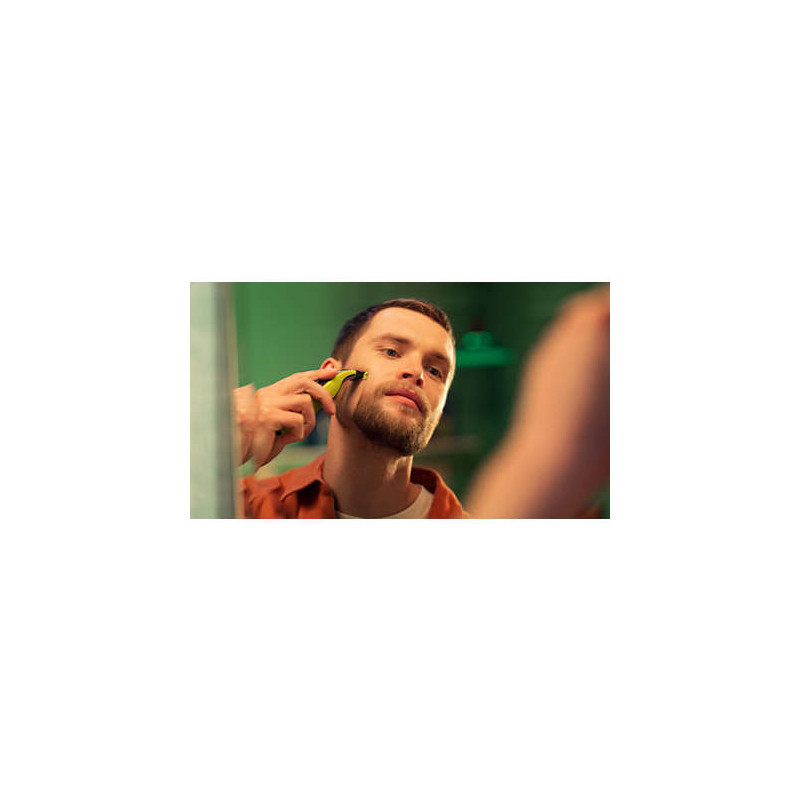OneBlade 360 -vaihtoteral on kahepoolne konstruktsioon, mis võimaldab teil habemepiirist täpselt piiritletud jooni ajada ja ka habeme pikkust kergesti reguleerida. Vastupidavad terad püsivad kaua teravad, pakkudes teile iga kord usaldusväärset ja nahasõbralikku raseerimist.