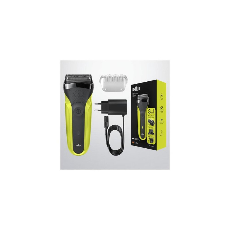<br />Braun Series 3 Shave&Style 300BT Electric Shaver, Razor for Men, Black/Volt Green. Shaver system: Foil shaver, Product colour: Black, Green, Control type: Buttons. Power source: AC/Battery, Battery technology: Nickel-Metal Hydride (NiMH), Battery type: Built-in battery. Weight: 364 g, Battery weight: 22 g. Package width: 56 mm, Package depth: 111 mm, Package height: 203 mm. Quantity per pack: 1 pc(s), Attachment combs: Beard, Ear, Head, Nose, Whisker