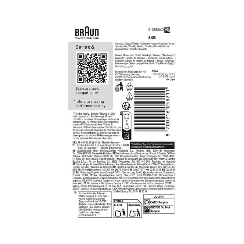 Braun Series 5 64 B. Toote tüüp: raseerimispea, raseerimispeade arv: 1 pea, toote värv: must, roostevaba teras