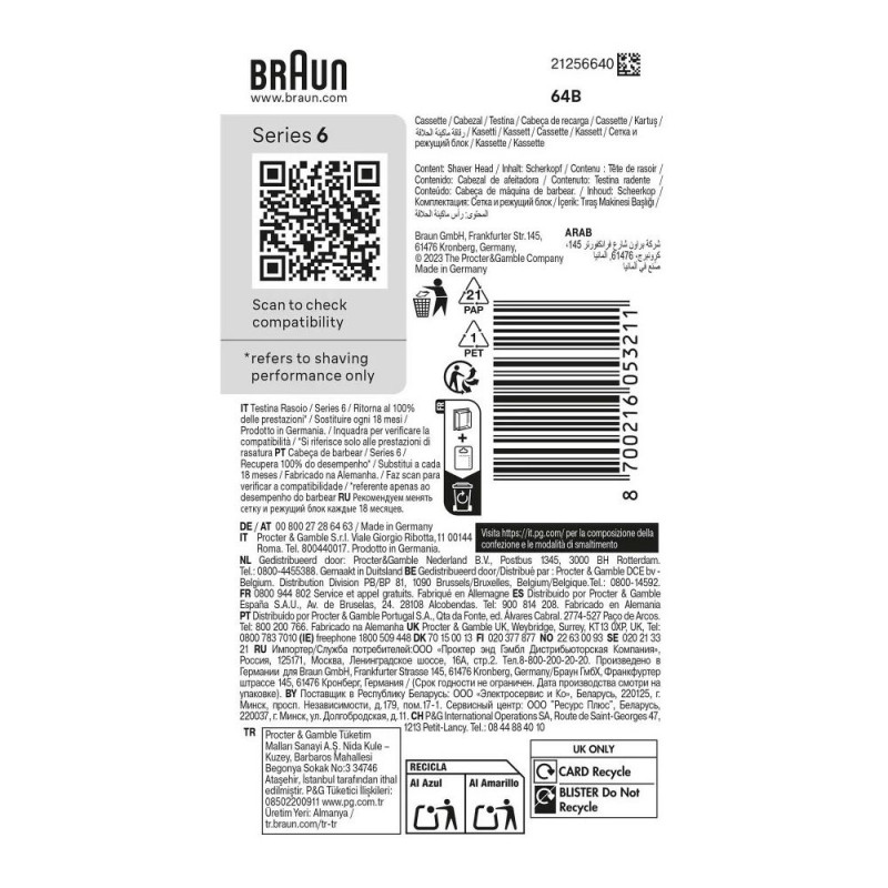 Braun Series 5 64 B. Tootetüüp: Raseerimispea, raseerimispea(de) arv: 1 pea, toote värv: must, roostevaba teras