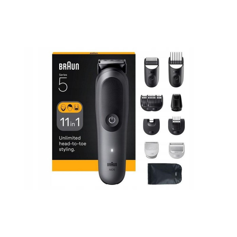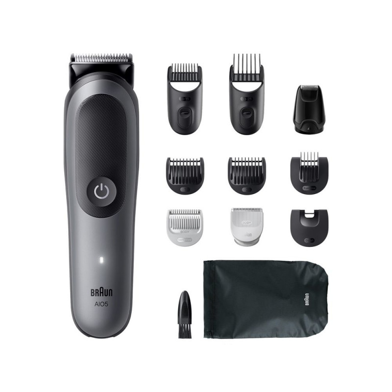 Braun MULTIGROOM AIO5560 kõik-ühes trimmer on loodud mugavust ja täpsust silmas pidades. Selle komplekti kuuluvad erinevad tarvikud võimaldavad sul saavutada professionaalse tulemuse kodustes tingimustes, olgu eesmärgiks siis habeme kujundamine, juukselõikus või keha karvade hooldus.