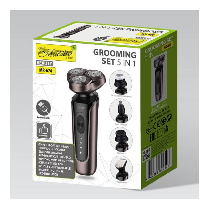 Maestro MR-674 5-ühes USB-C pardlikomplekt on põhjalik lahendus meestele, mis ühendab endas kaasaegse tehnoloogia ja funktsionaalsuse.