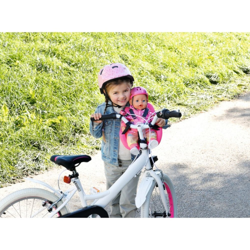 Nüüd saab sinu BABY born nukk tulla sinuga lõbusatele jalgrattaseiklustele! See armas roosa jalgrattaiste on loodud spetsiaalselt BABY born nukkudele ja pakub neile turvalist ja mugavat sõitu. Kinnitage iste lihtsalt oma jalgratta lenkstangi külge ja teie BABY born on valmis teiega igale poole kaasa tulema!