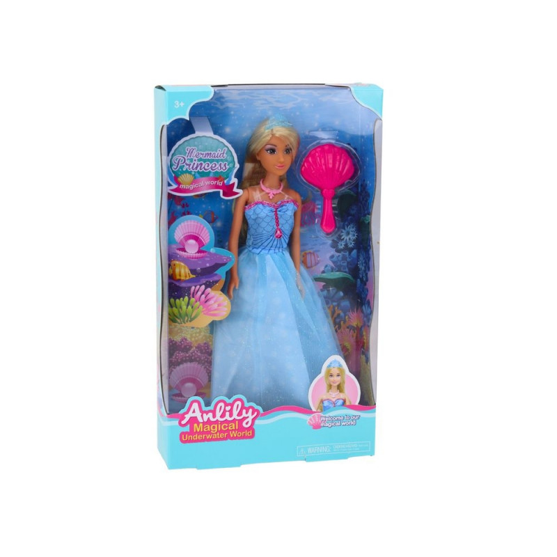 Anlily Merineitsi Printsess Nukk Sinine Kleit Kamm