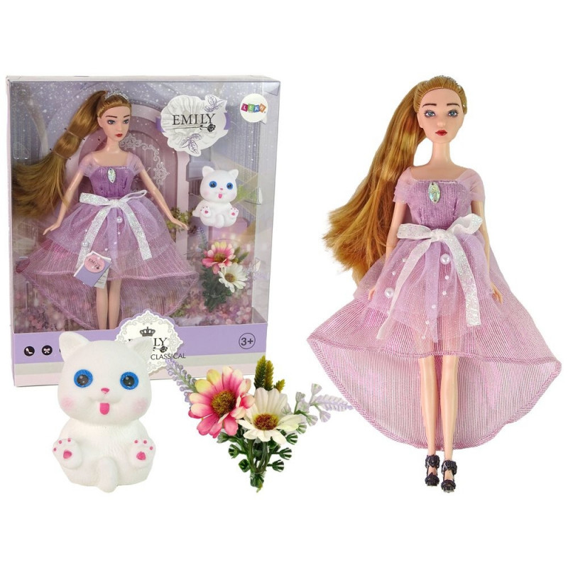 Emily pikad blondid juuksed on seotud hobusesabasse, mis annab talle armsa ja peene välimuse. Koos nukuga on komplektis ka sõbralikku ilmet ja siniseid silmi omav valge kassike, mis muudab selle komplekti veelgi toredamaks.
