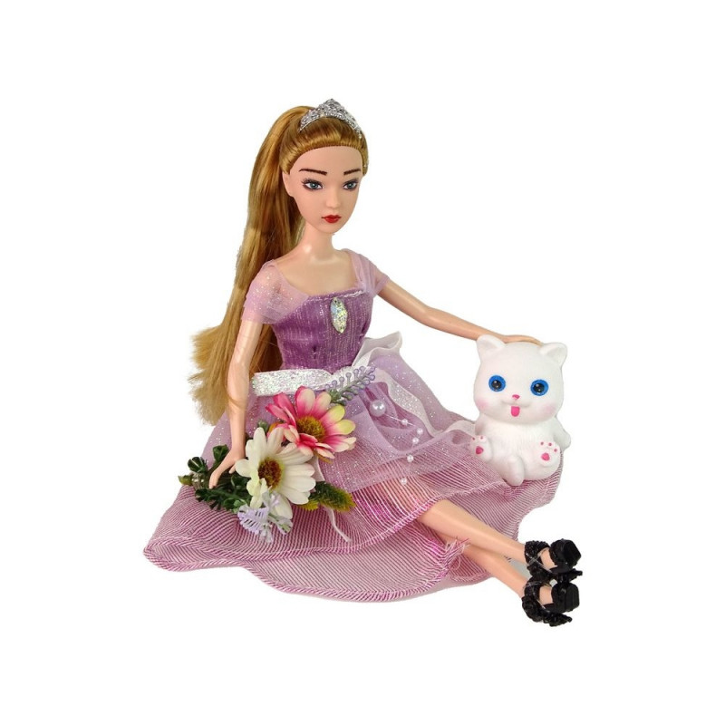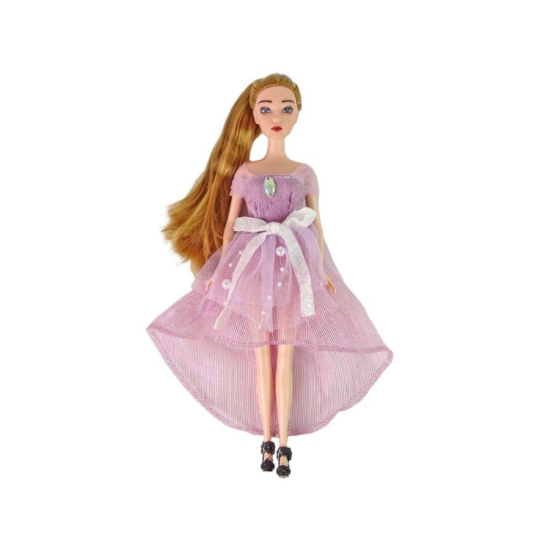 Tutvustame võluvat Emily nukku pikkade blondide juustega. See kaunis nukk on riietatud pikka kleiti, mis lummab roosade sädelevate detailide, dekoratiivsete pärlite ja lipsudega. Peas kannab ta elegantset tiaarat ning jalas on mustad stiilsed kontsakingad, mida kaunistab õrn roos – see lisab talle veelgi rohkem võlu.