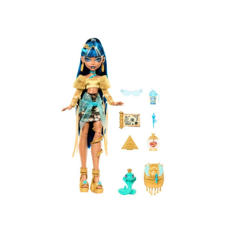 - Monster High Cleo De Nile nukk särab kuningliku šikiga. Komplektis on ka kobra Hissette ja vaaraole väärilised aksessuaarid.
