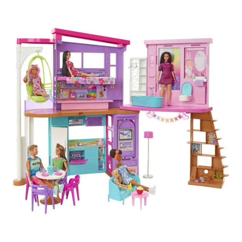 - Kahekorruselises majas on magamistuba, vannituba, köök, söögituba, elutuba ja garderoob. Avastage selle moodne välimus ja Barbie'le omane stiil.