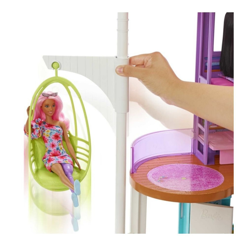 Barbie Puhkusemaja komplektiga saad välja mõelda põnevaid lugusid oma unistuste puhkusest! See kahekorruseline Barbie nukkude maja on lõputu inspiratsiooniallikas uute lugude jutustamiseks, pakkudes mängimiseks koguni kuut erinevat ala: magamistuba, vannituba, köök, söögituba, elutuba ja garderoob. Iga selle moodsa ja stiilse Barbie maja nurk innustab looma kaasahaaravaid lugusid ning lisalõbu pakuvad nutikad lahendused, nagu kiik, mis toimib liftina, või liigutatav sein, mis sobib ideaalselt filmiõhtu või sünnipäevapeo korraldamiseks. Üle 30 elemendi – näiteks armas kutsikas, ainulaadsed mööbliesemed ja aksessuaarid – teevad Barbie Puhkusemajast suurepärase kingituse lastele alates 3. eluaastast. Nukud müüakse eraldi. Värvid ja dekoratiivsed elemendid võivad erineda.