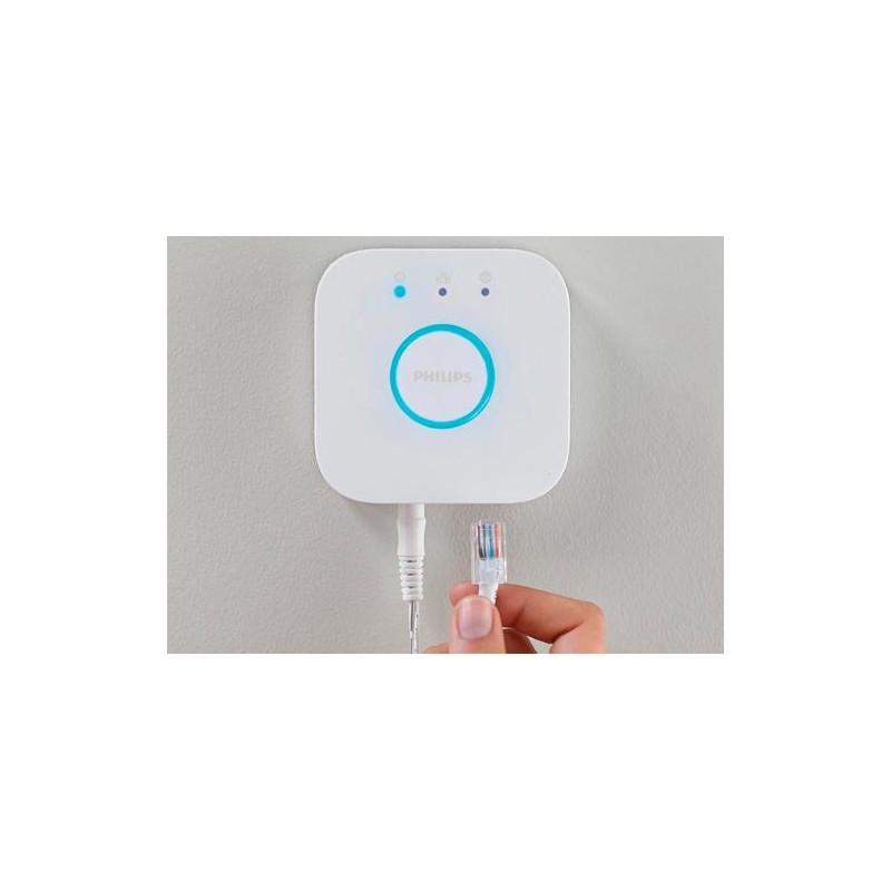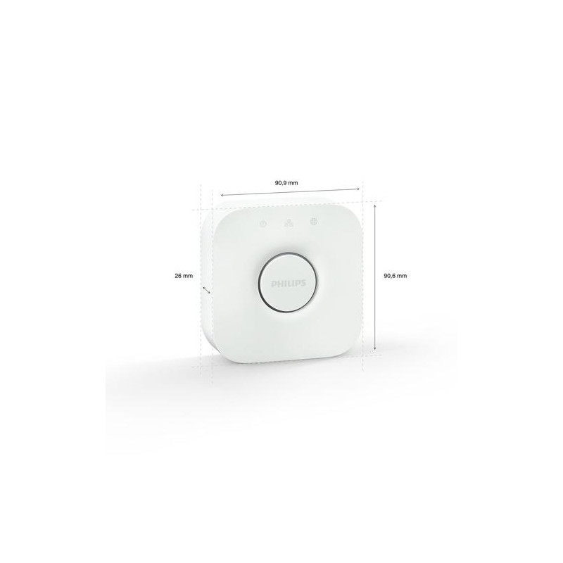 Philips Bridge. Connectivity technology: Wireless, Wireless technology: ZigBee, Product colour: White. Power source: AC, AC input voltage: 220 - 240 V, AC adapter input voltage (hue bridge): 100-240 V. Cables included: LAN (RJ-45). Quantity per pack: 1 pc(s). Width: 91 mm, Depth: 26 mm, Height: 91 mm