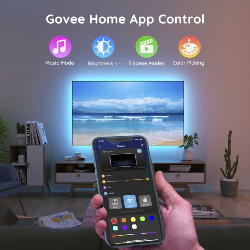 Govee H6179 LED-taustavalgustus on varustatud Bluetooth-ühendusega, mis võimaldab mugavat juhtimist otse nutitelefonist läbi spetsiaalse Govee rakenduse. Rakenduse abil saab valida erinevaid valgusrežiime, seadistada värve, muuta heledust ning kasutada ka dünaamilisi valgusefekte, mis reageerivad näiteks muusikale või teleri ekraanil toimuvale. Tänu sellele on võimalik luua tõeliselt isikupärane ja elav valguslahendus igaks olukorraks.
