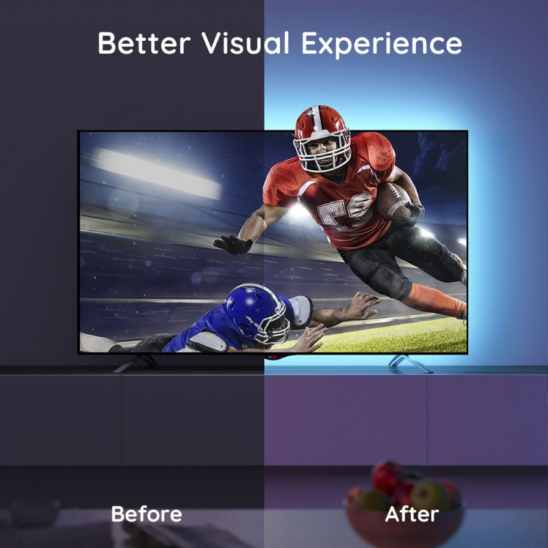 Govee H6179 teleri taustavalgustus on ideaalne lahendus neile, kes soovivad oma koduse meelelahutuse kogemust viia uuele tasemele. See LED-riba on spetsiaalselt loodud 46–60-tollistele teleritele, pakkudes dünaamilist ja värviküllast taustavalgustust, mis muudab filmide, mängude ja telesaadete vaatamise veelgi kaasahaaravamaks. Tänu RGB-tehnoloogiale on võimalik valida tuhandeid erinevaid värvitoone ning luua just selline atmosfäär, mis sobib teie tuju või ruumi interjööriga.