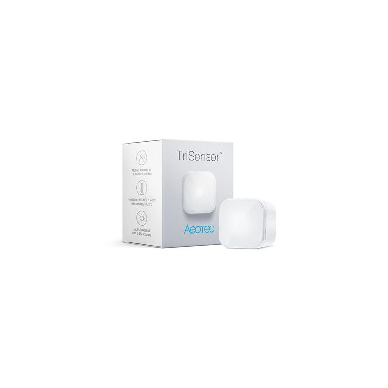 <br />Z-Wave TriSensor. Measuring parameters: Light, Motion, Temperature, Connectivity technology: Wireless, Wireless technology: Z-Wave. Power source: Battery, Battery type: CR123A. Width: 45 mm, Depth: 45 mm, Height: 37 mm. Quantity per pack: 1 pc(s). Country of origin: United States