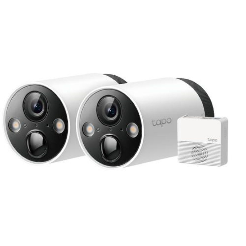<b>Smart. Secure. Easy.<br>Install Anywhere with Long Battery Life<br>Smart Wire-Free Security Camera System</b><br><br><b>180-Day Long Battery Life</b><br>The rechargeable and removable battery with low power protocol can largely extend your usage time.<br>*Battery life of up to 180 days is based on TP-Link’s laboratory testing triggering 10-20 events per day. Actual battery life may vary based on device settings, use, and environmental factors.<br><br><b>2K QHD Crystal Clear View</b><br>Now with 1.7 times more pixels than 1080p, providing clearer videos and more crisp photos.<br><br><b>Smart AI Detection and Notification</b><br>Smart AI identifies people, pets, and vehicles, notifying users as needed.<br><br><b>Sound and Light Alarm</b><br>Trigger the sound and light alarm to frighten<br>away the unwanted visitors.<br><br><b>Set the Camera On the Table</b><br>Set your camera anywhere(Indoor / Outdoor) you want.<br><br><b>Two-Way Audio</b><br>Communicate directly with the outdoors.<br><br><b>Customizable Activity Zone</b><br>See what matters most to you.<br><br><b>Secure Local Storage</b><br>Save recorded videos on the hub-installed microSD card (Up to 256GB) or using Tapo Care cloud storage service.<br><br><b>Cloud Storage</b><br>Tapo Care supported. Enjoy your cloud storage with unlimited spaces.<br><br><b>Water & Dust Resistant - IP65</b><br>Resistant to outdoor weather-related factors.TP-Link Tapo Smart Wire-Free Security Camera System, 2-Camera System. Type: IP security camera, Placement supported: Indoor & outdoor, Connectivity technology: Wireless. Mounting type: Wall, Product colour: White, Form factor: Bulb. Field of view (FOV) angle: 113°. Optical sensor size: 25.4 / 3 mm (1 / 3"). Focal length range: 3.18 mm