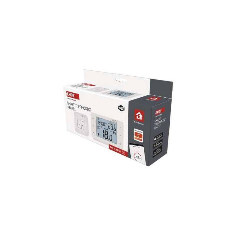 <br />Emos P56211. Type: Digital thermostat, Proper use: Room, Interface: AC. Display: Digital. Power source: AC/Battery, Receiver power source: AC, Maximum switching current: 16 A. Width: 86 mm, Depth: 37 mm, Height: 86 mm