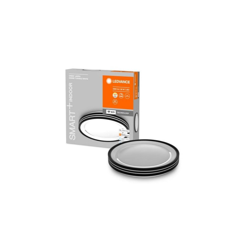 <b>Areas of application</b><br><br>− Indoor applications<br>− Kitchens, living rooms, children's rooms or home officesLEDVANCE SMART+ Orbis Jaden. Type: Smart ceiling light, Interface: Wi-Fi, Product colour: Black. Mobile operating systems supported: Android, iOS. Total power: 30 W, Power source type: AC, Input voltage: 220 - 240 V. Height: 85 mm, Weight: 1.28 kg, Diameter: 48.8 cm. Package type: Box, Package width: 103 mm, Package depth: 533 mm