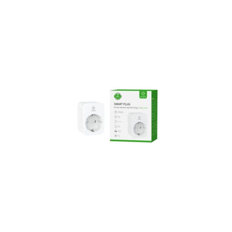 WOOX R6118 is a smart Wi-Fi plug with Schuko socket design, allowing remote control of connected devices via app or voice assistants (Google Assistant, Alexa). Supports power loads up to 3680W and includes 802.11b/g/n Wi-Fi support. Suitable for indoor use (IP20) with up to 30m range.