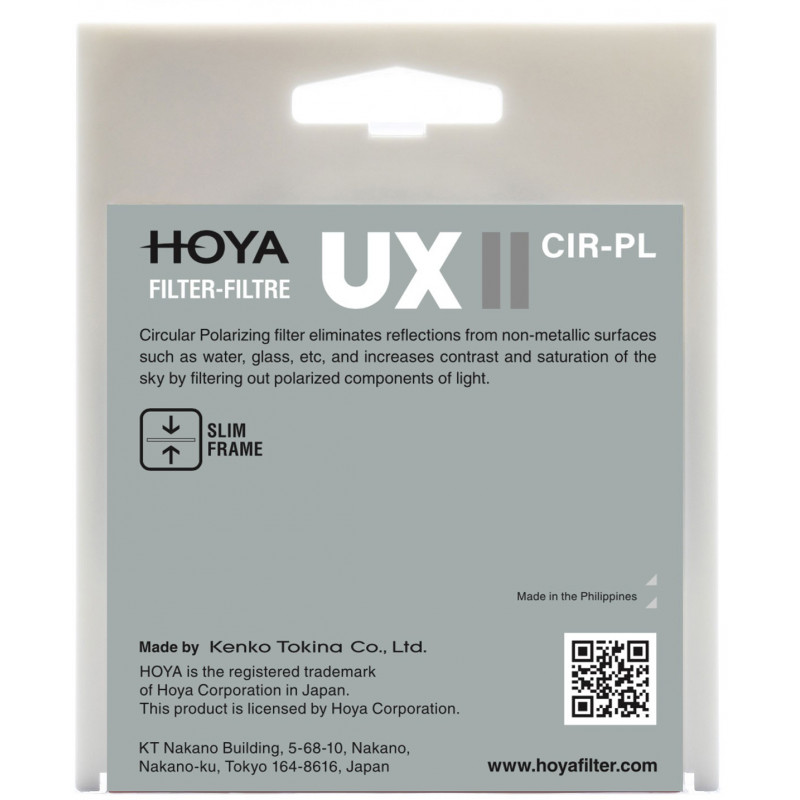 Hoya UX II seeria ringpolarisatsioonifilter on mõeldud eelkõige just alustavatele foto- või videograafidele, kes tahavad tõsta oma fotode kvaliteeti rahakotisõbralikult. Tänu õhukese profiiliga alumiiniumraamile ei teki kaadri äärtes vinjeteerumist. Seetõttu sobib filter kasutamiseks ka lainurkobjektiividega.