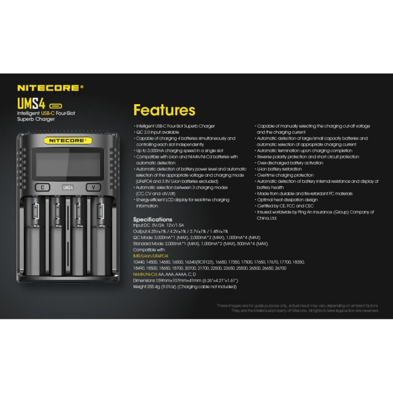 BATTERY CHARGER 4-SLOT/UMS4 NITECORE