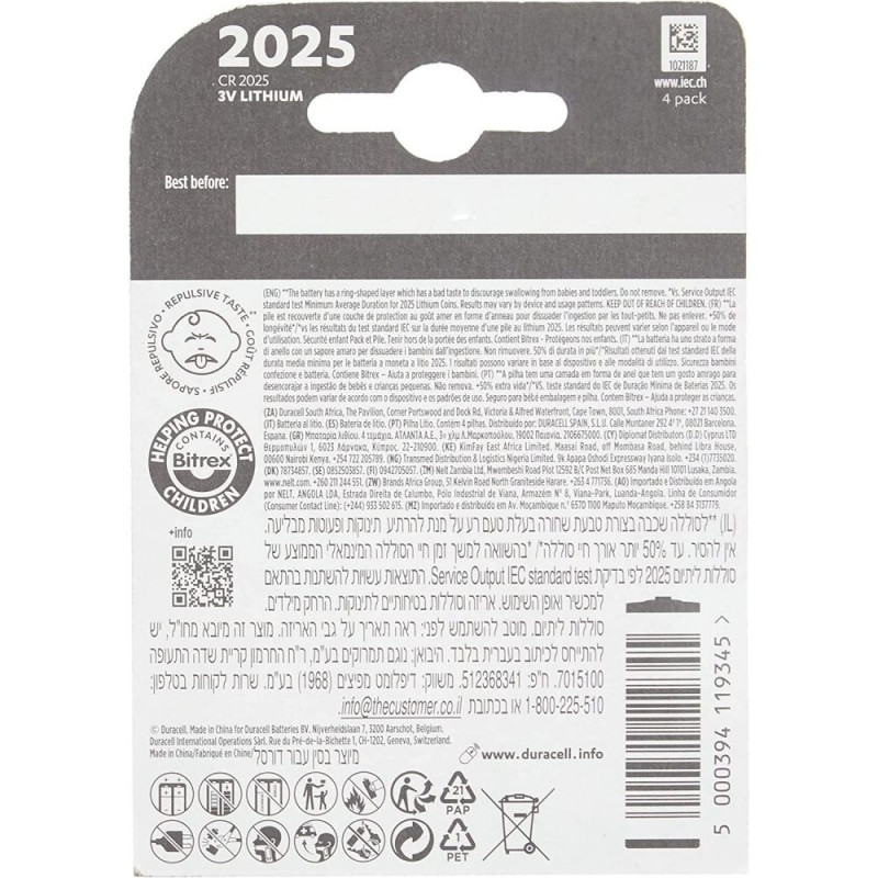 Duracell CR2032 lithium button cell 3V battery (4 pieces, CR2032)