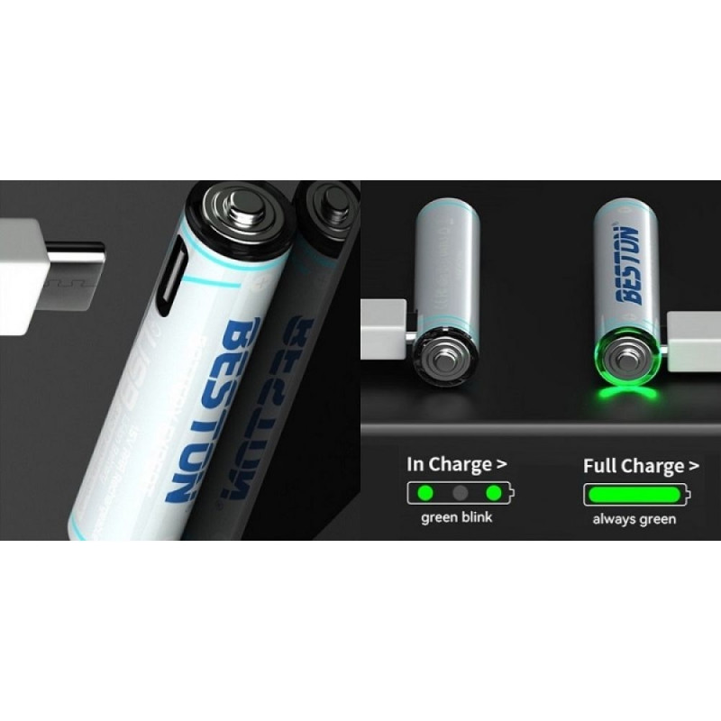 Rechargeable AA batteries with USB C, 400mAh, Li-Ion (4 pcs)