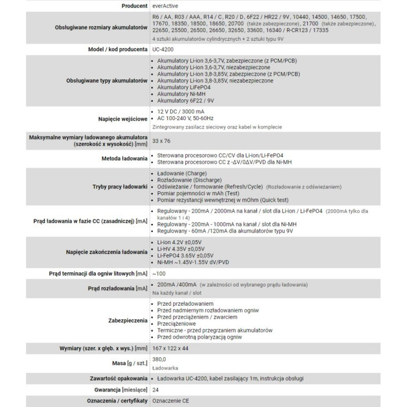 everActive UC-4200 on kompaktne koduseks kasutamiseks mõeldud laadija, mis ühildub silindriliste Li-ion ja Ni-MH akudega. Toetab korraga kuni 4 aku laadimist.