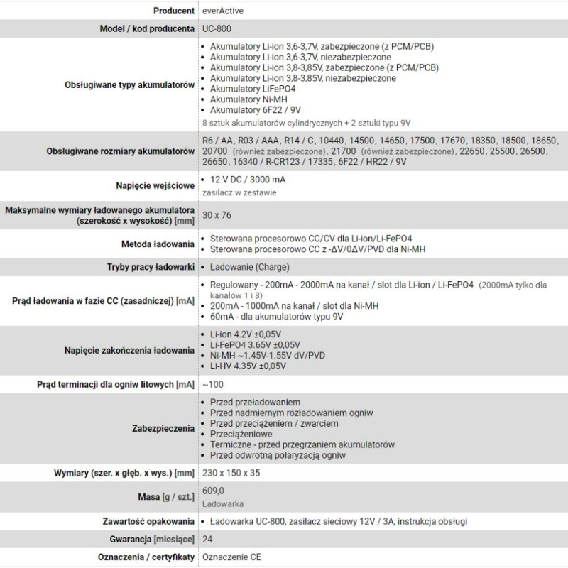 The everActive UC-800 Charger supports up to 10 batteries simultaneously, including Li-ion and Ni-MH types. It is compatible with various battery sizes, such as 9V, AA, AAA, and features a built-in display for easy monitoring.Osta kohe, viimased eksemplarid laos!