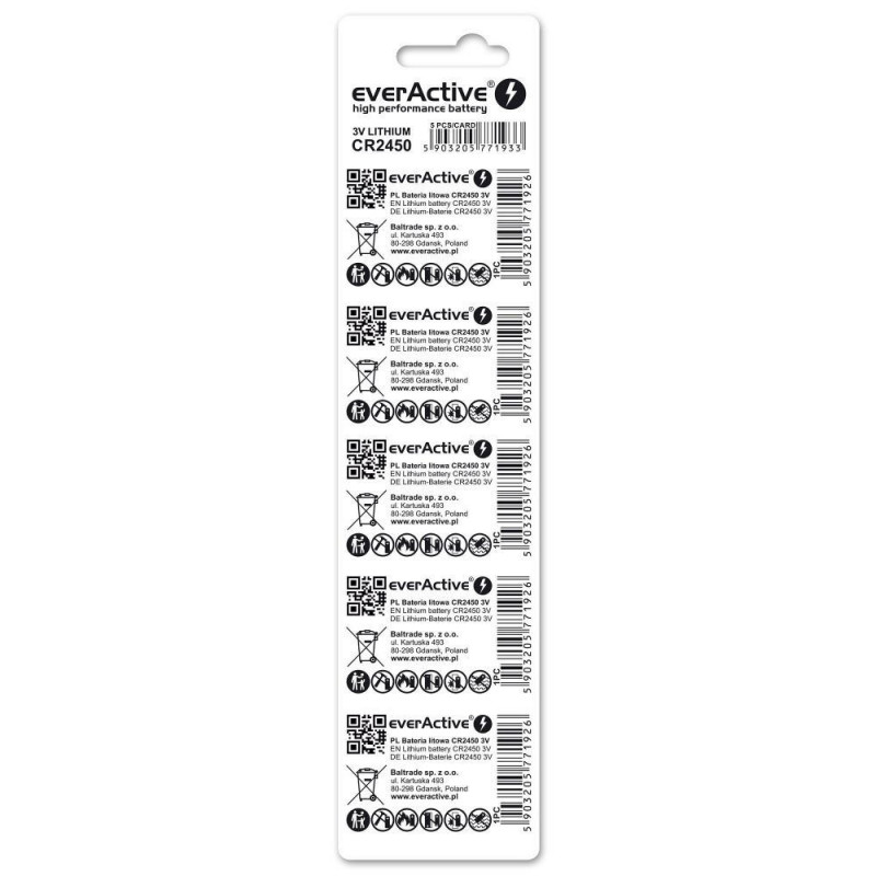 Battery Pack - everActive CR2450 Lithium 5 pcs Button/Coin