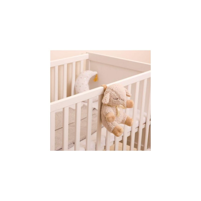 Inside this sweet sheep is a secret sleep solution – a sound plush that plays 8 soothing sounds and melodies! With favorites like a mother's heartbeat and Rockabye Baby, these soothing sounds are scientifically proven to help babies and children go to sleep faster. Best of all, Sleep Sheep™ can grow with your child and become a calming lovey that helps comfort your child to sleep for years to come. When bedtime beckons, Sleep Sheep™ easily attaches to any crib by using the hook-and-loop fastener behind its head. With eight soothing sounds and adjustable volume, at the touch of a button your baby will be nodding off in no time at all! After 23 or 45 minutes (depending on which option you choose), Sleep Sheep™ shuts off to save battery power and to create a quiet environment for deepest sleep. Night after night and nap after nap, Sleep Sheep™ promotes better sleep for healthier, happier families! Cloud B Sleep Sheep. Product type: Toy animals, Sounding. Batteries included