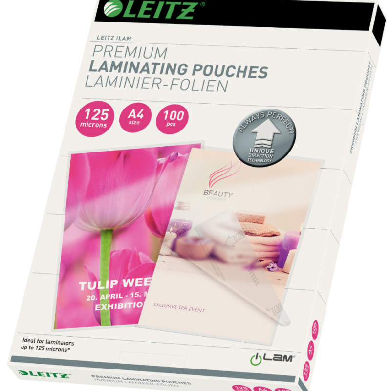 Lamineerimiskile A4 125mic, 100 A4 kile pakis Esselte Leitz iLam Laminating Pouches With UDT Code