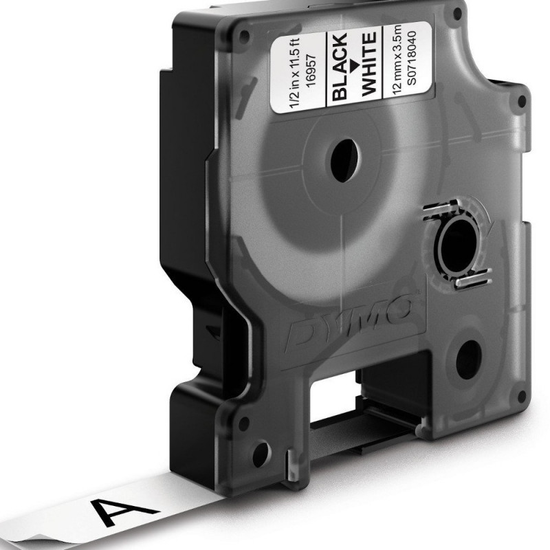 Kleepkirjalint Dymo 12mm, must/valgel D1 Tape 16957 Black on White, flexible nylon tape 3,5m