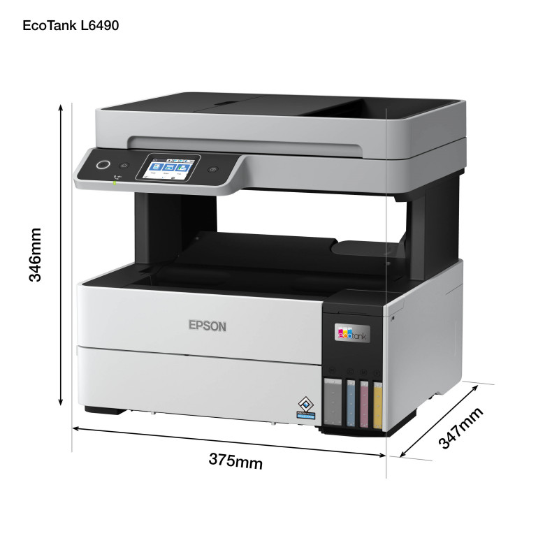 Tänu kompaktsusele ja kaasaegsele disainile sobitub Epson EcoTank L6490 igasse töökeskkonda. Printeri kasutamine on lihtne tänu intuitiivsele 6,1 cm värvilisele puuteekraanile, mis võimaldab kiiret ligipääsu kõikidele põhifunktsioonidele. Lisaks on printeril Wi-Fi ja Ethernet ühendused, mis võimaldavad seda hõlpsasti jagada mitme kasutaja vahel.
