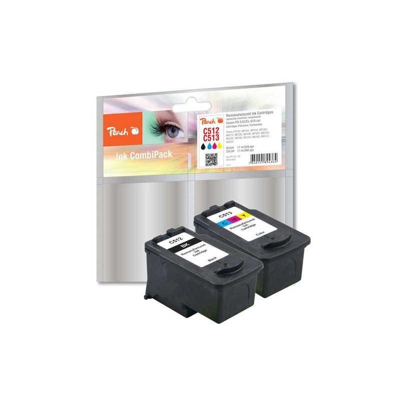 Peach is a leading Swiss brand and supplier of 100%-compatible replacement ink cartridges. Leading-edge technology ensures optimal quality for outstanding results. Colour durability and fade-resistance satisfy the most stringent requirements to guarantee brilliant printouts. To ensure Premium Quality, we manufacture our inks at our own development centre in Switzerland, after which they are injected into the cartridges at our European production site. The latest advances in research and technology flow into our manufacturing and production methods. A quality level that the Asian manufacturers fail to equal, available at very attractive prices. A genuine alternative to expensive OEM products and low-budget inks.<br><br><b>Components:</b><br><br>- 1 Peach Print-head black, compatible with PG-512<br>- 1 Peach Print-head color, compatible with CL-513Peach PI100-160. Black ink volume: 17 ml, Supply type: Multi pack, Colour ink page yield: 500 pages, Colour ink volume: 17 ml, Black ink page yield: 520 pages