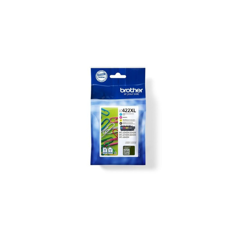 Looking for a cartridge that offers effortless performance every time you print? The Brother LC422XLVAL high yield multipack (including black, cyan, yellow and magenta ink cartridges), with colour fade resistant properties guarantees smooth, reliable and top quality printouts from your first to your last print. Our perfectly balanced inks ensure your printer stays working at its best. <br><br>Brother consider the environmental impact at every stage of your ink cartridge life cycle, reducing waste at landfill. All our hardware and ink cartridges are built to have as little impact on the environment as possible. <br> <br>Genuine Brother LC422XLVAL ink cartridges - worth it every time.Brother LC422XLVAL. Supply type: Multi pack, Colour ink page yield: 1500 pages, Printing colours: Black, Cyan, Magenta, Yellow, Quantity per pack: 4 pc(s), Black ink page yield: 3000 pages