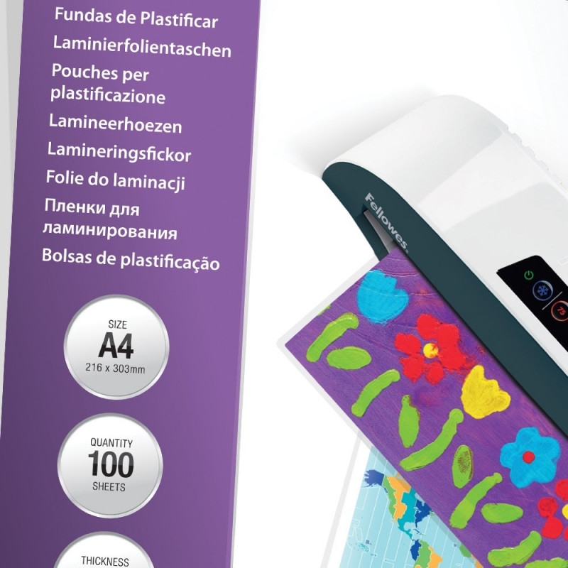 Lamineerimiskile A4 80mic FELLOWES 100 lehte MATT