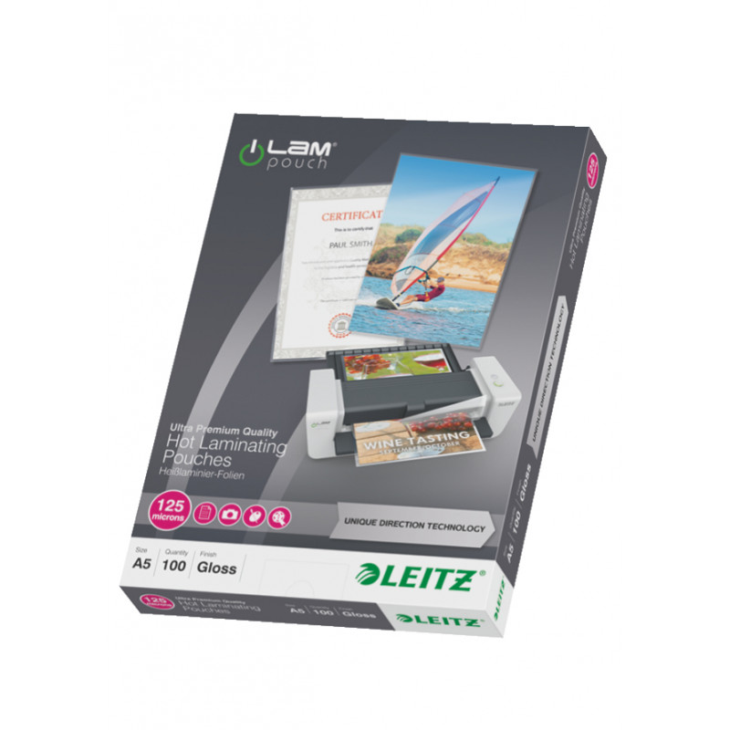 <br />Leitz iLAM UDT. Product colour: Transparent, Format: A5. Width: 160 mm, Depth: 29 mm, Height: 222 mm. Quantity per pack: 100 pc(s)