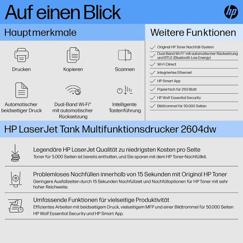 HP LaserJet Tank MFP 2604dw, multifunction printer (grey, USB, LAN, WLAN)