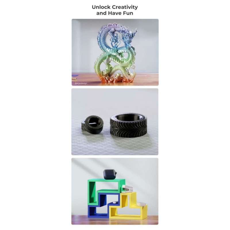 Creality Ender-3 V3 SE toetab mitmesuguseid filamenttüüpe, sealhulgas PLA, TPU ja PETG, pakkudes teile paindlikkust erinevate projektide teostamisel. Selle printeri kuumendatav printimisalus tagab, et teie mudelid kinnituvad kindlalt alusele ja eemaldamine on lihtne. Lisaks on printeril täpne ja intuitiivne LCD-ekraan, mis muudab seadistuste kohandamise ja printimise jälgimise lihtsaks.
