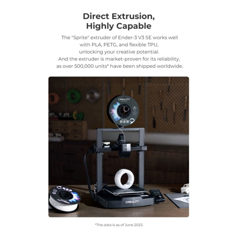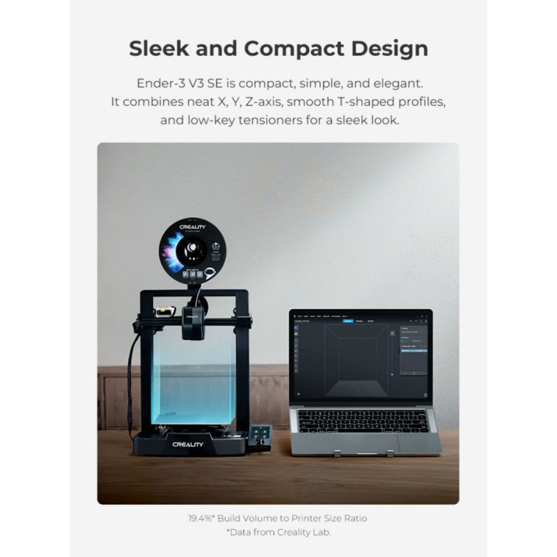 Creality Ender-3 V3 SE 3D-tulostin on ideaalne valik nii algajatele kui ka kogenud kasutajatele, kes otsivad usaldusväärset ja taskukohast 3D-printerit. See mudel on tuntud oma suurepärase kvaliteedi ja kasutusmugavuse poolest, pakkudes mitmeid uuendusi ja täiustusi võrreldes varasemate versioonidega. Ender-3 V3 SE on loodud selleks, et pakkuda kasutajatele sujuvat ja probleemivaba 3D-printimise kogemust.