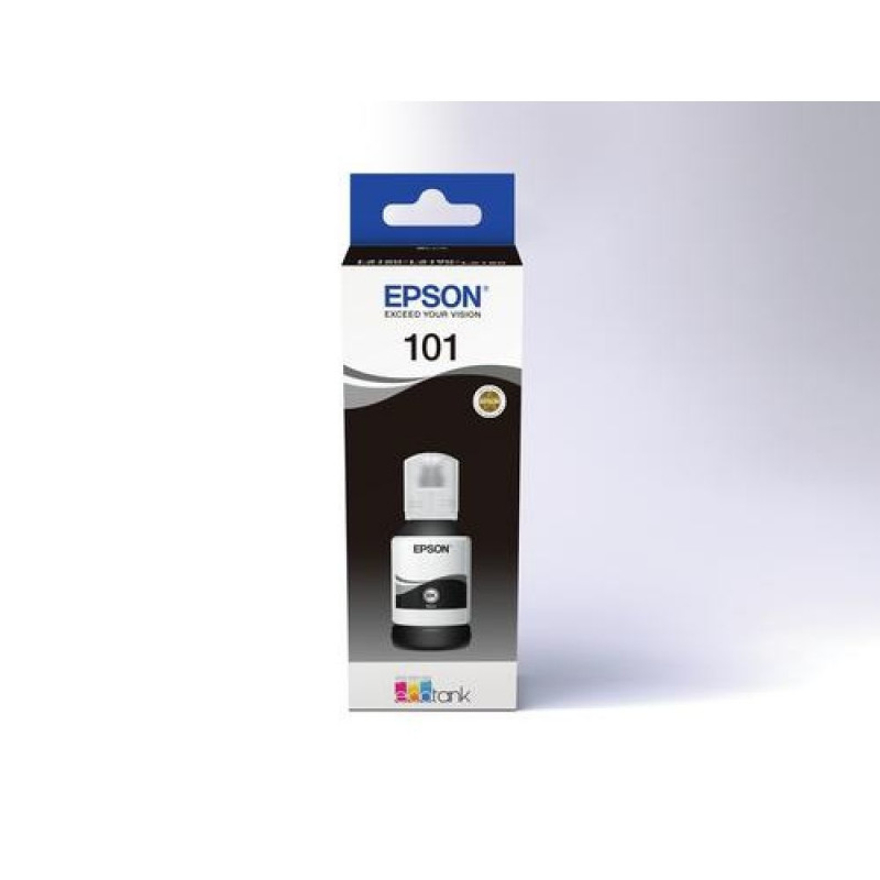 <br />Epson 101 EcoTank Black. Type: Original, Printing colours: Black, Brand compatibility: Epson. Quantity per pack: 1 pc(s), Package width: 58 mm, Package depth: 175 mm. Master (outer) case gross weight: 7.1 g, Master (outer) case length: 480 mm, Master (outer) case width: 320 mm