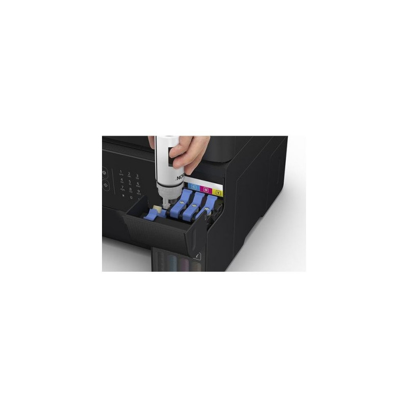 <b>Say goodbye to cartridges</b><br>EcoTank provides hassle-free printing for homes and small offices - the ultra-high capacity ink tanks allow mess-free refills and the key-lock bottles are designed so only the correct colour can be inserted.<br><br><b>Keep on saving</b><br>This economical printer saves you up to 90% on printing costs* and comes with up to 3 years' worth of ink included in the box*. Print up to 6,600 pages in black and 5,900 in colour* with the included ink, and zero cartridge waste.<br><br><b>Epson Smart Panel app</b><br>This app enables you to control your printer from your smart device*. You can print, copy and scan documents and photos, set up, monitor and troubleshoot your printer, all from your phone or tablet.<br><br><b>Packed with features</b><br>Featuring a 3.7cm colour LCD screen, 30-page automatic document feeder and fax, 100-sheet rear paper tray and print speeds of up to 15 pages per minute*, you can speed through a variety of tasks with ease.<br><br><b>Modern flexibility</b><br>Featuring a compact design, Apple AirPrint support and Wi-Fi, Wi-Fi Direct and Ethernet connectivity, you can easily integrate this printer with your existing home or office set-up and print from mobiles, tablets and laptops*.<br><br>Serious about sustainability<br>With PrecisionCore Heat-Free Technology you can enjoy reduced energy consumption and less need for replacement parts. Our unique Heat-Free Technology means no warm-up time and reduced power consumption, and as the printhead also comes pre-installed so setting up your printer is hassle-free.Epson EcoTank L5590. Print technology: Inkjet, Printing: Colour printing, Maximum resolution: 4800 x 1200 DPI, Print speed (colour, normal quality, A4/US Letter): 22 ppm. Copying: Colour copying. Scanning: Colour scanning, Optical scanning resolution: 1200 x 2400 DPI. Faxing: Mono faxing. Maximum ISO A-series paper size: A4. Wi-Fi. Product colour: Black