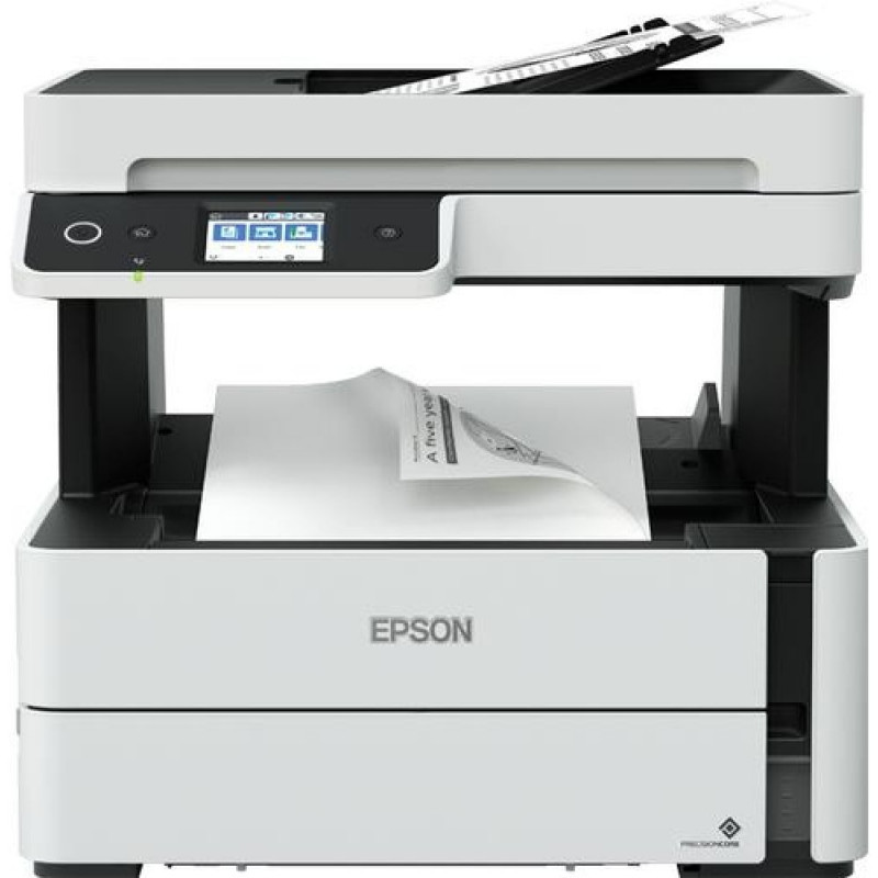Mono EcoTank printer for business, with an extremely low TCO in a user-friendly, stylish and compact design. Print up to an amazing 11,000 pages with the included ink that comes in a bottle for mess-free, easy refills. Wi-Fi, USB and Ethernet connectivity, PCL support, and a fast FPOT of six seconds all help to keep productivity high.<br><br><b>Save money</b><br><br>A high ink yield combined with Epson's economical inkjet technology delivers a low TCO and a competitive cost per page.<br><br><b>Save time</b><br><br>This reliable cartridge-free printer features an enhanced ink filling system and easy-to use-ink bottles, keeping intervention to a minimum. Thanks to the ink tank being positioned at the front of the printer, with a clear view of the ink levels, this new design is compact and provides easy access for refilling. Its fast First Page Out Time (FPOT) of six seconds from sleep, and 20ppm print speed, mean you won't be waiting around for jobs.<br><br><b>Save energy</b><br><br>Unlike a laser, our inkjet technology doesn't need any heat during the printing process, helping to keep energy use low and reduce electricity bills.<br><br><b>Business features</b><br><br>Wi-Fi, Ethernet and USB connectivity and a compact footprint mean that it's easy to place on a desktop and connect to a user's PC or laptop.Epson EcoTank ET-M3180. Print technology: Inkjet, Printing: Mono printing, Maximum resolution: 1200 x 2400 DPI. Copying: Mono copying, Maximum copy resolution: 600 x 600 DPI. Scanning: Colour scanning, Optical scanning resolution: 1200 x 2400 DPI. Faxing: Colour faxing. Maximum ISO A-series paper size: A4. Product colour: Black, Grey