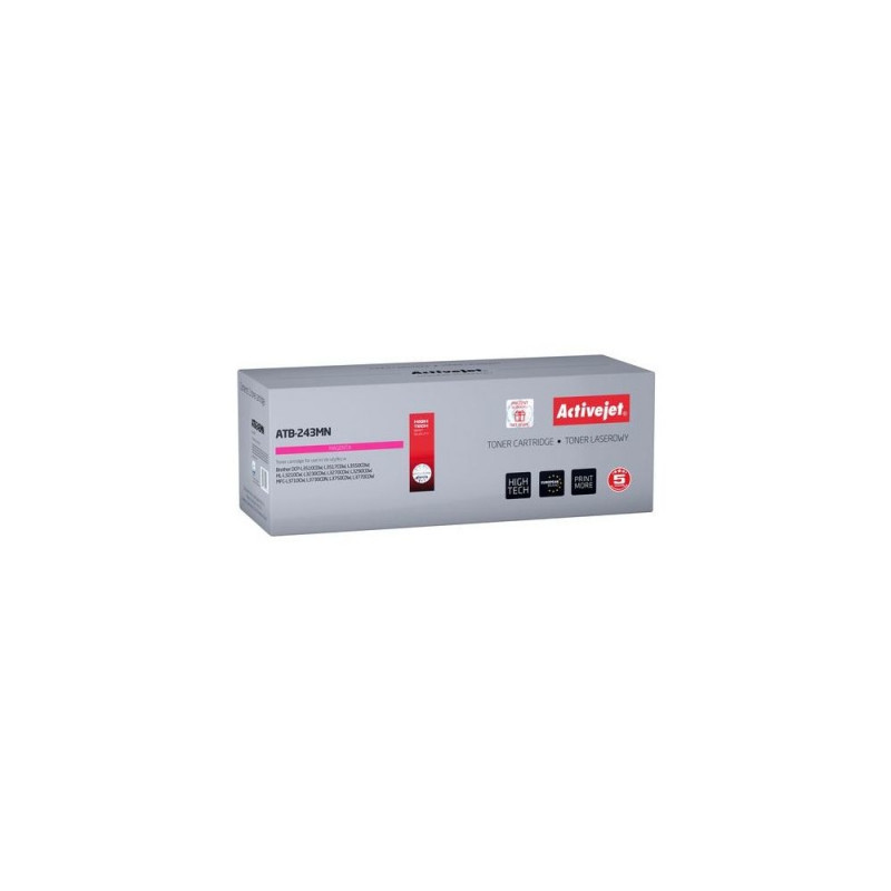 Activejet toner cartridges are well known for their performance and excellent quality. Black toner products give extremely high density of black and the colour toner cartridges amaze with accurate colour rendering. <br>All toner cartridges are rigorously tested for their quality, which means they are safe and trouble-free to use.<br>Their key components are sourced from several reliable sources, including manufacturers from Europe and Japan.<br>Activejet toner cartridges are a great choice for anyone looking for quality laser print.<br>Activejet is the leader of the Polish market of laser printer supplies.<br><br>Some Activejet toner products are manufactured using recycling technologies. The emptied cartridges are disassembled and assessed in detail with respect to their technical condition. The parts, which pass the disassembly check successfully, are then sent to the production line where full value toner cartridges are built. The cartridges pass detailed quality checks at each stage of their production. The process is under a constant and professional technical supervision. Finally, each cartridge manufactured passes an extremely restrictive print test. This procedure guarantees that the use of our cartridges ensures best quality printouts. <br><br>All our products are subject to the following quality guarantee: <br>- the number of pages of printout meets the one specified in the offer<br>- print quality no worse than the one of genuine cartridges<br>- guaranteed safety of printer useActivejet ATB-243MN toner (replacement for Brother TN-243M; Supreme; 1000 pages; magenta). Colour toner page yield: 1000 pages, Printing colours: Magenta, Quantity per pack: 1 pc(s)