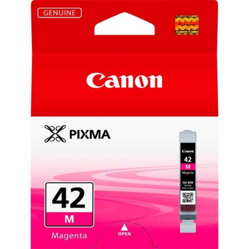 The ChromaLife100+ dye-based ink range delivers stunning quality and vibrant photos in colour and monochrome. The 13ml magenta ink tank allows you to print up to 416 photos in 10x15cm or 48 in A3+ size at ISO/IEC 24711† standard.Canon CLI-42M Magenta Ink Cartridge. Colour ink type: Dye-based ink, Cartridge capacity: Standard Yield, Colour ink page yield: 416 pages, Printing colours: Photo magenta, Quantity per pack: 1 pc(s)