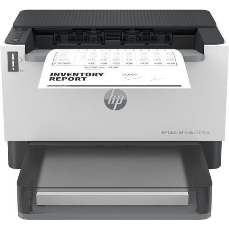<b>Powerful productivity. Super-affordable refill.</b> Discover business-ready capabilities and savings with HP LaserJet Tank 2504dw Printer pre-filled with up to 5,000 pages of Original HP Toner<sup>[1]</sup><br><br>HP LaserJet Tank 2504dw Printer. Print technology: Laser. Number of print cartridges: 1, Maximum duty cycle: 25000 pages per month. Maximum resolution: 600 x 600 DPI. Maximum ISO A-series paper size: A4. Print speed (black, normal quality, A4/US Letter): 22 ppm, Duplex printing. Display: LCD. Network ready, Wi-Fi. Product colour: Grey
