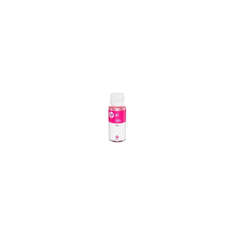 Ideal for busy households and small businesses that want to print, purchase ink infrequently and replenish ink when it’s convenient.<br>Print thousands of pages with one simple purchase of a set of Original HP high-yield ink bottles – at an extremely low cost per page.<sup>[1]</sup> Get high-volume printing, an easy and convenient way to replenish ink, and HP print quality and reliability.HP 31 70-ml Magenta Original Ink Bottle. Type: Original, Printing colours: Magenta, Brand compatibility: HP. Quantity per pack: 1 pc(s), Package width: 470 mm, Package depth: 470 mm. Master (outer) case gross weight: 2.89 g, Master (outer) case length: 217 mm, Master (outer) case width: 313 mm