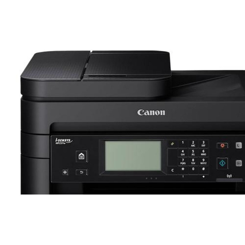 <b>Canon i-SENSYS MF237w</b><br>Connected 4-in-1 mono laser printer for small offices.<br><br><b>Wireless printing for your small office</b><br>A network mono laser printer built to deliver everything a small office needs: print, copy, scan and fax from PCs, smartphones and tablets.<br><br><b>An ideal office companion</b><br>If you run a small business or work from a home office, you’ll appreciate the fast, reliable mono print quality, touchscreen display and print, copy, scan and fax<br><br><b>Sustainability matters</b><br>The printer’s ECO reports make it easy to monitor and track usage, while Auto Off and reduced power consumption modes help keep your carbon footprint to a minimum.<br><br><b>Smartphone and tablet printing</b><br>Easily print from smartphones, tablets, laptops and desktop computers with wireless support for Mopria™, Apple AirPrint™, Google Cloud Print™ and the Canon PRINT business app.<br><br><b>Speedy printing</b><br>Quick First-Print means the printer wakes from sleep mode and starts in an instant, while the speedy 23 ppm print performance keeps your office productivity in top gear.<br><br><b>Canon All-In-One Cartridges</b><br>Canon’s All-in-One Cartridges deliver superb mono text documents and images. Experience consistent reliability and quality with just a single cartridge change.Canon i-SENSYS MF237w. Print technology: Laser, Printing: Mono printing, Maximum resolution: 1200 x 1200 DPI. Copying: Mono copying, Maximum copy resolution: 600 x 600 DPI. Scanning: Colour scanning, Optical scanning resolution: 600 x 600 DPI. Faxing: Mono faxing. Maximum ISO A-series paper size: A4. Wi-Fi. Direct printing. Product colour: Black