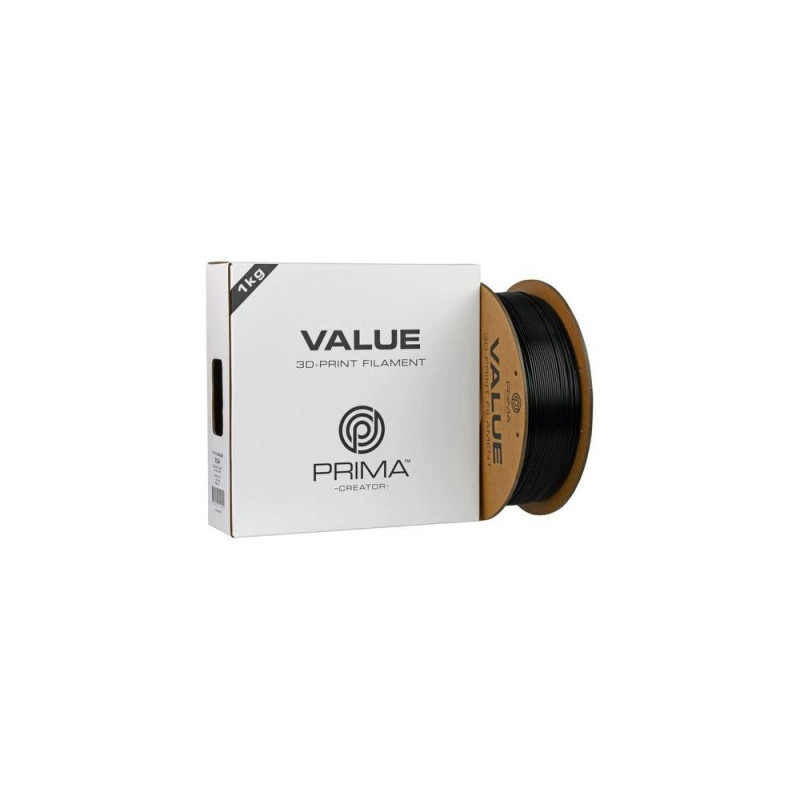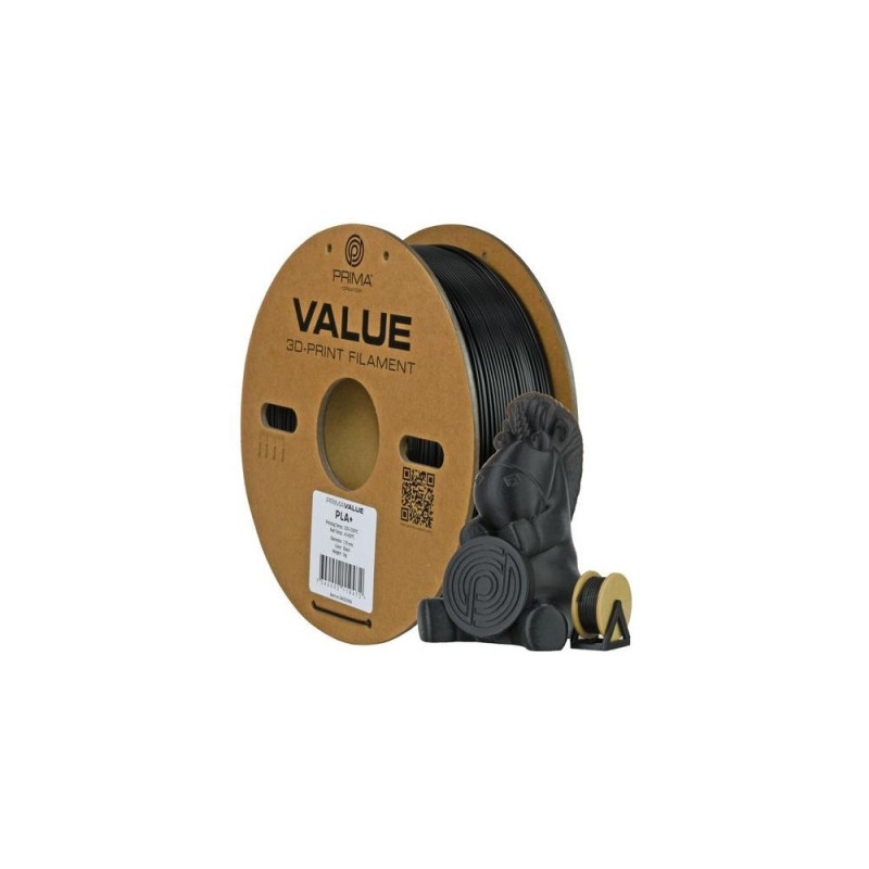 Discover the perfect balanced choice for your 3D prints with PrimaCreator Value PLA+ filament! Our PLA+ filament series offers outstanding quality at an unbeatable price, making it the perfect choice for both beginners and experienced enthusiasts.<br><br><b>PrimaValue PLA+</b><br>With PrimaCreator Value PLA+, you not only get an affordable option, but also high-quality material designed to meet your printing needs. We havent compromised on quality - each spool is carefully manufactured to ensure smooth extrusion and reliable results.<br><br><b>Eco-friendly packaging</b><br>Our environmental awareness also extends to our packaging. PrimaCreator Value PLA+ is delivered on a paper spool made from recycled paper, reducing our environmental impact and providing an elegant and sustainable storage solution for your filament.<br><br><b>The ideal choice</b><br>PrimaCreator Value PLA+ offers more than just affordability and quality. Unlike some other filaments, PLA+ emits no unpleasant odor during printing and is environmentally friendly. Plus, it's much stronger than standard PLA, making it ideal for functional prints and prototypes.<br><br>To suit a variety of projects and needs, PrimaCreator Value PLA+ offers a wide range of the most popular base colors. Whether you prefer classic colors like black, white, and gray, or want to create colorful and vibrant objects, we have filaments to suit your needs.<br><br><b>High compatibility</b><br>Moreover, PrimaCreator Value PLA+ is designed to work smoothly with most 3D printers on the market. Whether you have an entry-level budget model or an advanced professional printer, you can be confident that our PLA+ filament will provide reliable and high-quality results every time.<br><br>Make your next 3D printing experience both affordable, environmentally friendly, and strong with PrimaCreator Value PLA+ filament! With outstanding quality, versatility, and durability, it's the ultimate choice for all your creative projects.3D Prima 12807. Printing material: Polylactic acid (PLA), Printing colours: Black, Colour name: Matte Black. Weight: 1 kg, Depth: 58 mm, Height: 200 mm. Quantity per pack: 1 pc(s), Package width: 210 mm, Package depth: 70 mm